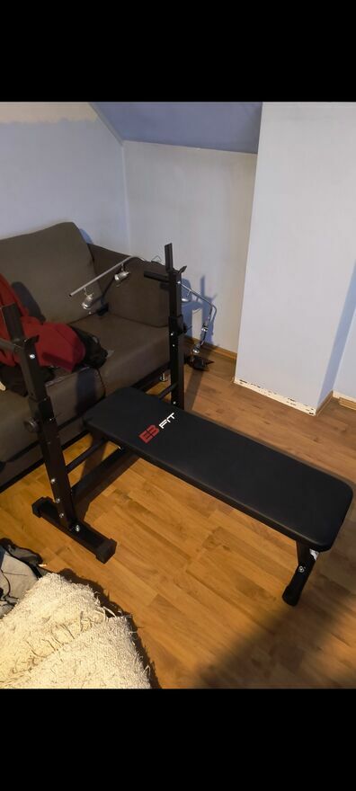 Ławka firmy EB fit użyta 3 razy bardzo mocna ii w stanie jak nowa jest Czy ławka trzy w jednym skos w jednym koncie tylko płasko oraz uchwyty do dipów składa się też waga użytkownika to 130 kilo chyba. Dopuszczalne obciążenie całkowite 240kg. Na innej aukcji mam też Gryf łamany i obciążenie bitumiczne łącznie około 60 lub 70kg.Zapraszam do zakupu, warto okazja..Alan